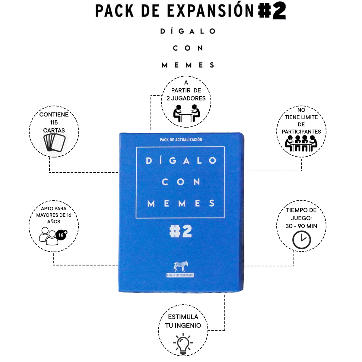 El pack de expansión #2 de Dígalo Con Memes incluye 90 cartas de situación y 25 cartas de imagen.